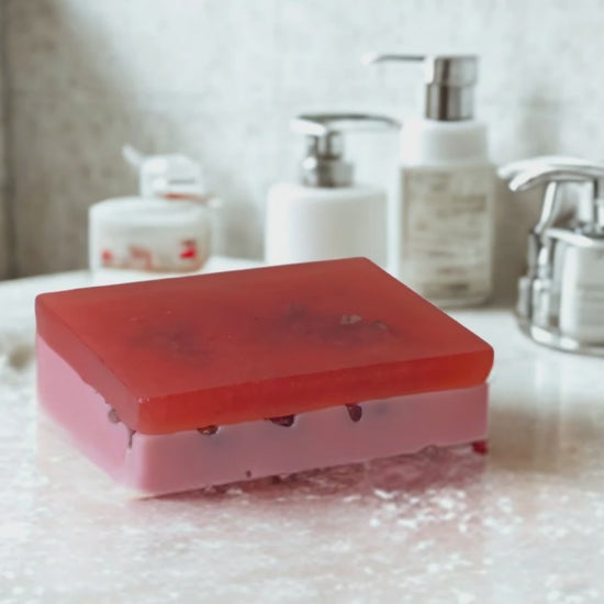 W strukturze mydła zatopione są liofilizowane maliny — drobne, naturalne akcenty, które dodają mu charakteru i podkreślają jego autentyczny, rzemieślniczy styl.